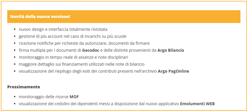 Attraverso una collaborazione con Orizzonte Scuola, Argo Dirigo consente, inoltre, di rimanere sempre aggiornati sulle novità del mondo della scuola, di conoscere le ultime normative, di consultare utili guide operative e l’agenda con le scadenze più importanti del mondo scolastico.
